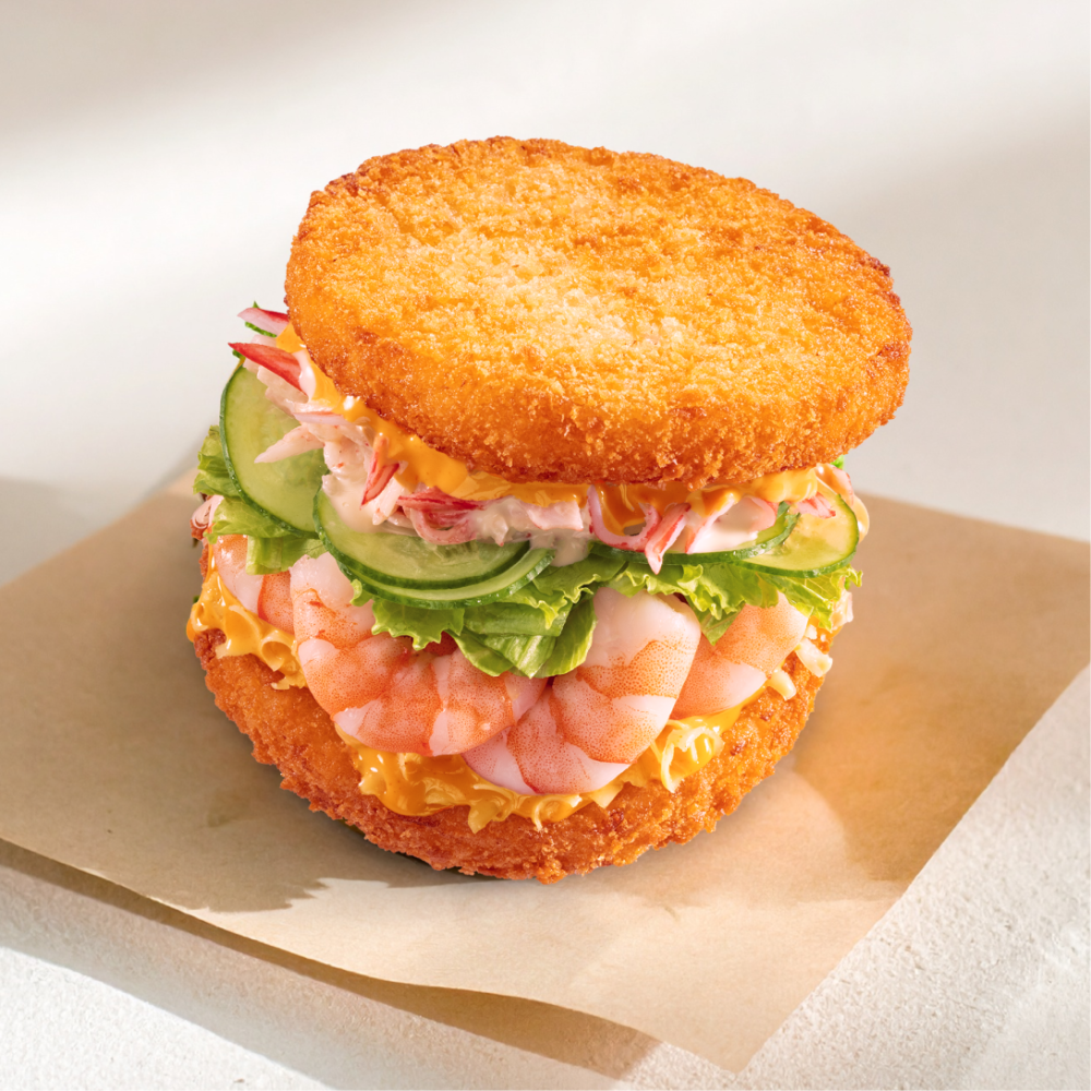 Рис с хрустящей темпурой, острая гауда, сочные отварные креветки, хрустящий огурец и свежий салат. Подается с насыщенным крабовым соусом и панировочными сухарями для идеальной хрустящей корочки.